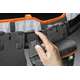 -Oppheng for hylstere: Et unikt oppheng brukes for alle lommer. Systemet gjør det enkelt å bytte hylster.